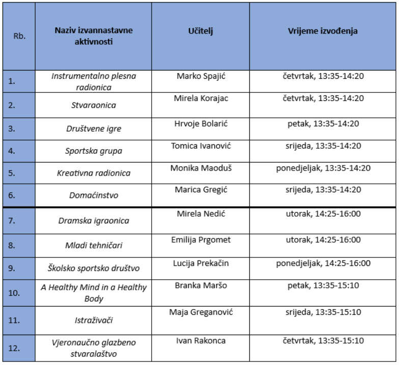 Izvannastavne aktivnosti (B1)u provedbi Eksperimentalnog programa “Osnovna škola kao cjelodnevna škola uravnotežen, pravedan, učinkovit i održiv sustav odgoja i obrazovanja”