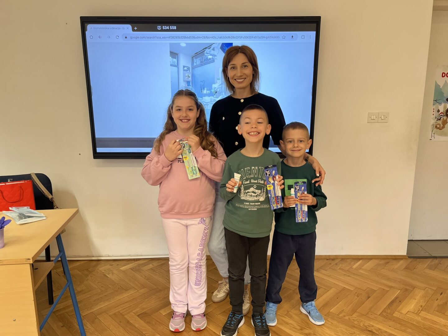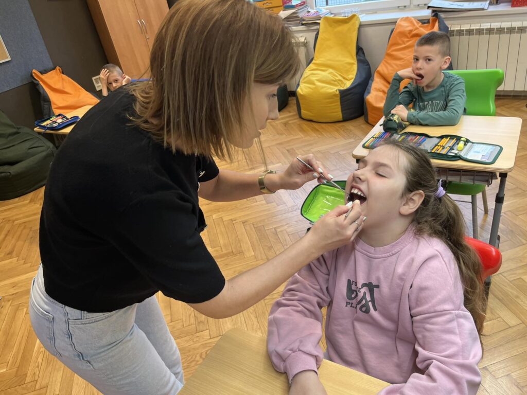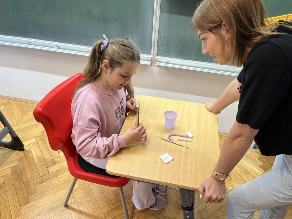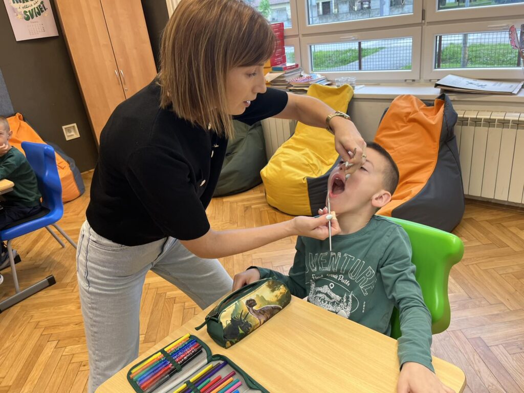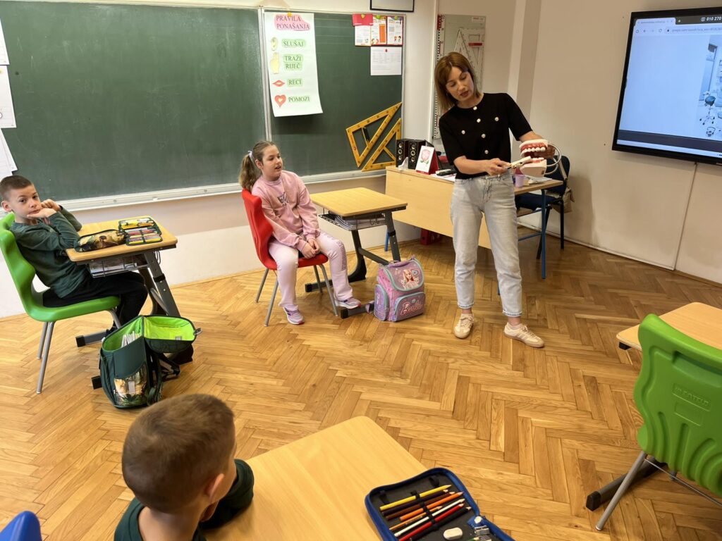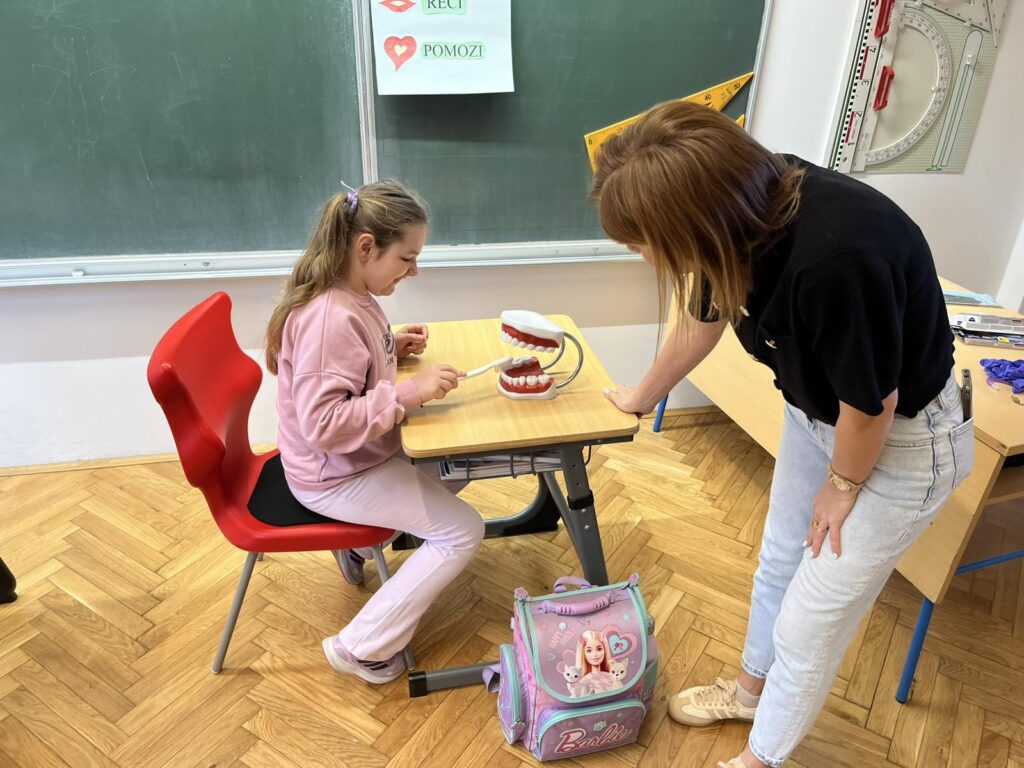 Danas je učenike 1. razreda u sklopu sata razrednika posjetila stomatologinja Zrinka Vukadin. Održala je predavanje o zubnoj higijeni i prevenciji zubnih bolesti. Pogledala je zubiće naših prvašića i dala im savjete o održavanju zdravlja zubi te o načinu na koji treba prati zube. Učenicima je podijelila pribor za za pranje zubi (četkice i paste za zube), bojanke i podsjetnike na pranje zubi u obliku naljepnica za svaki dan.